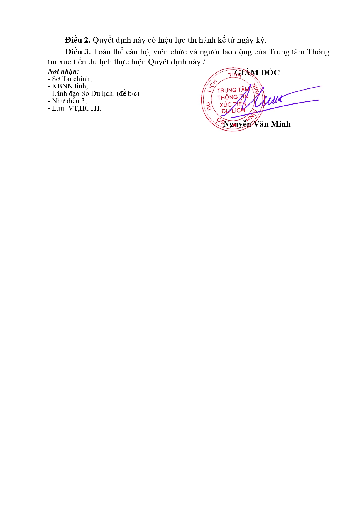 QUYẾT ĐỊNH V/v điều chỉnh dự toán chi thường xuyên ngân sách nhà nước của Trung tâm Thông tin xúc tiến du lịch năm 2025
