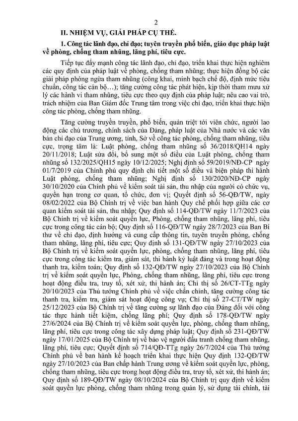 Kế hoạch công tác phòng, chống tham nhũng, tiêu cực năm 2026