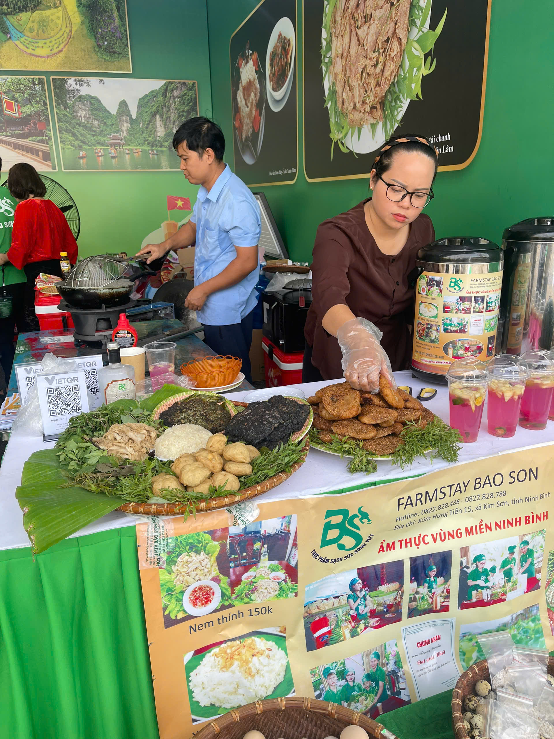Tại phân khu Lễ hội Ẩm thực “Thu Mỹ Vị”, gian hàng của Ninh Bình giới thiệu các món ăn đặc sản nổi tiếng như thịt dê núi, cơm cháy, miến lươn, nem Yên Mạc, rượu Kim Sơn cùng nhiều sản phẩm OCOP, quà tặng và hàng thủ công mỹ nghệ mang đậm bản sắc địa phương. Không gian ẩm thực được trang trí sinh động, giúp du khách cảm nhận rõ nét tinh hoa ẩm thực và văn hóa vùng đất Cố đô.