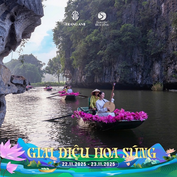 Trong không gian huyền ảo của vùng di sản Tràng An, nơi dòng Ngô Đồng lững lờ trôi qua ba hang Tam Cốc, tháng 11 này, du khách sẽ được chứng kiến một sự kiện chưa từng có: “Giai điệu Hoa Súng 2025 – Bản giao hưởng trên sông”.